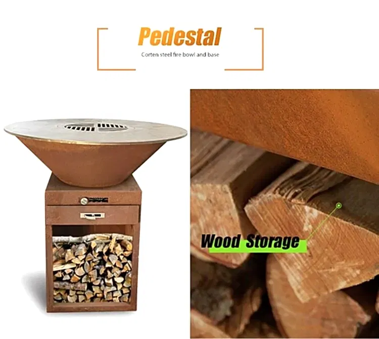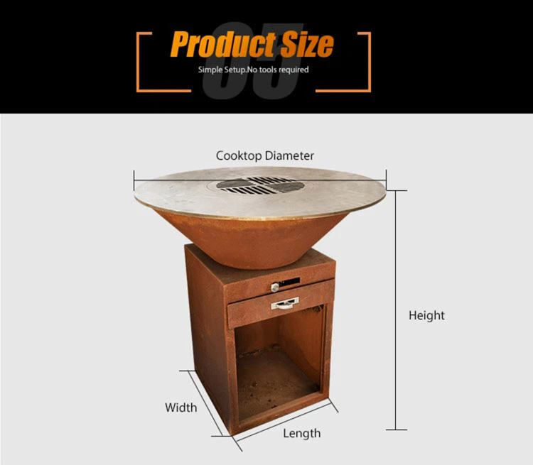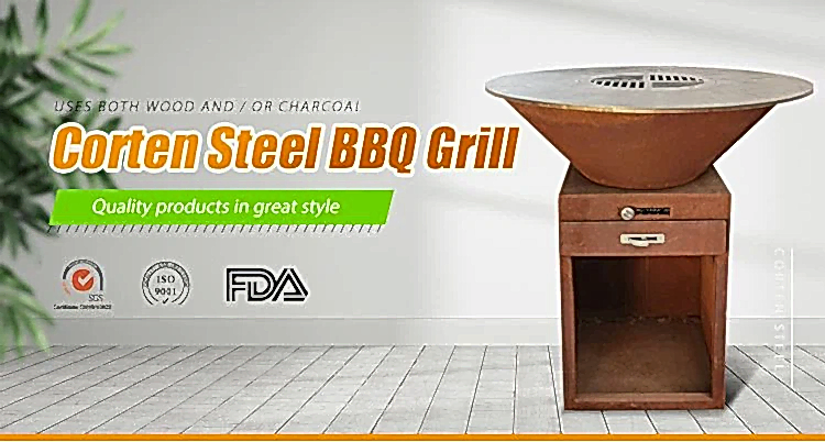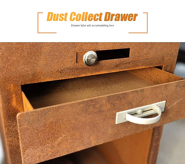 GN-BBQ -209- D Corten Steel Barbekü Kül Çekmeceli: Özel Hizmetler Mevcut, MOQ: 5pcs, 3 Standart Boyut İsteğe bağlı.