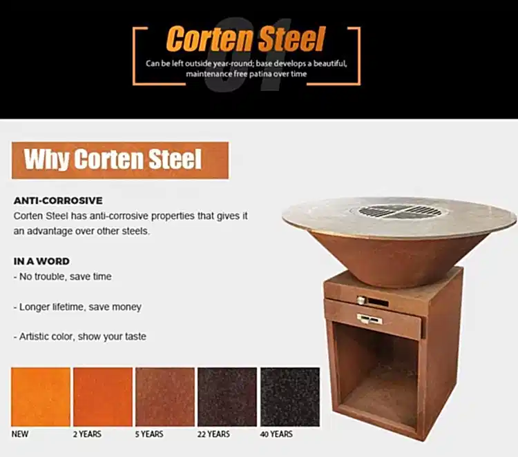 | Öğe | Kül çekmeceli Corten Steel Barbekü ızgarası |